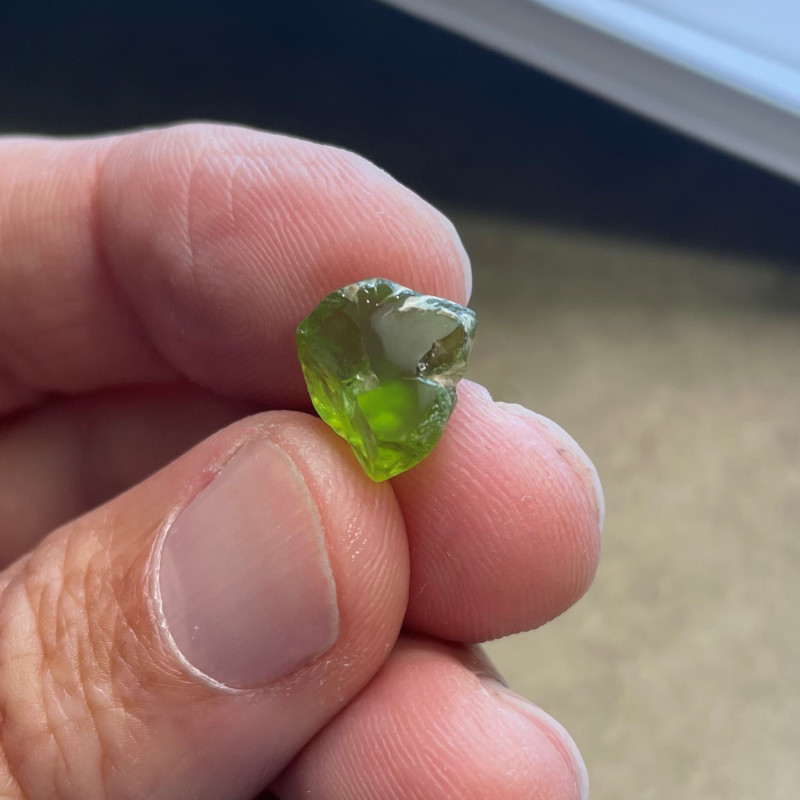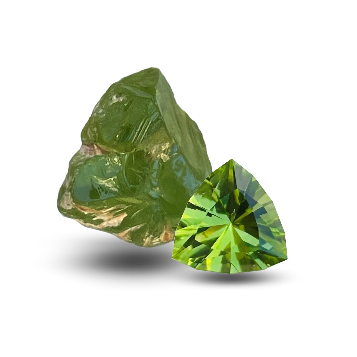 Notes: From the rough that you see in the pictures I have cut this beautiful Peridot from China. The green color is very beautiful and intense, the gem has small inclusions in the form of transparent sheets that do not affect the brightness of this gem due to their orientation.